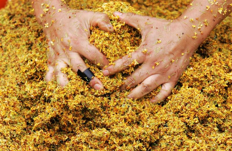 新华社照片,杭州(浙江),2010年10月9日\n 赏桂胜地满觉陇村民开做“糖桂花”\n 新华社发