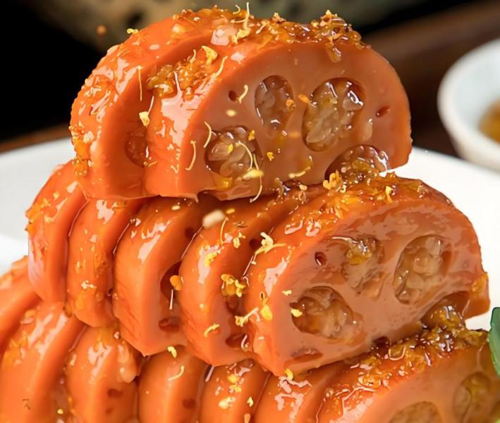如果在秋高气爽的日子里和亲友聚餐,南京人的餐桌上,打头的凉菜里少不了桂花糖藕。“三秋桂子,十里荷花。”夏荷开尽之后莲藕登场,没有荷莲清香的日子又恰有桂馥来接。桂花糖藕的组合,正像是对季节流转的心领神会。金陵美食达人袁枚在《随园食单》中记载了糖藕的传统做法:“藕须贯米加糖自煮,并汤极佳。”南京的桂花糖藕就是把糯米塞入莲藕的孔洞里同煮,煮到软糯的程度,放凉后再切片、浇上糖渍桂花。拾箸品味,莲藕入口即化,糯米绵绵拉住桂花的香甜,回味在唇齿和喉间久久驻留。