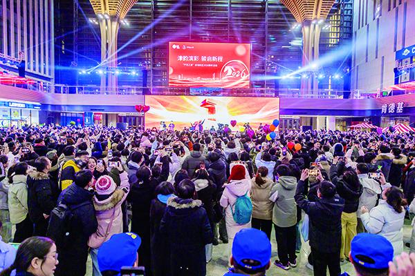 告别2025,拥抱2026,跨年夜的到来率先点燃了假期热潮。“津韵滨彩·骏启新程”——“芦花之夜”滨海新区喜迎2026跨年活动共吸引了6.8万人次到场。滨海文化中心室内“一个展区、两个舞台、三个市集、四组打卡点、五个场馆”及室外“两大市集、三大游乐、四大光影组团”是滨海新区为市民游客准备的跨年夜“大餐”。
